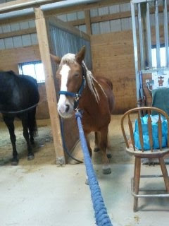 | Shy doesn't want to leave the comfort of her stall to work! |
